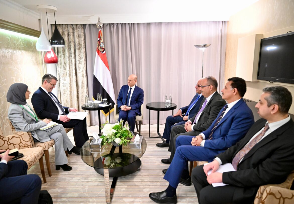 حضر اللقاء المستشار الاقتصادي لرئيس مجلس القيادة الرئاسي عبدالعزيز المخلافي، والقائم باعمال سفارة اليمن لدى المانيا لؤي الارياني.