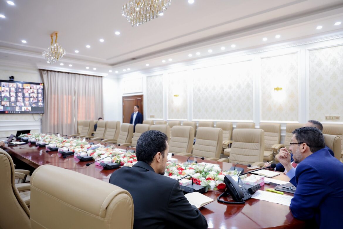 ترأس رئيس مجلس الوزراء وزير الخارجية وشؤون المغتربين الدكتور أحمد عوض بن مبارك، اليوم الاثنين، عبر الاتصال المرئي، الاجتماع الدوري للسفراء اليمنيين الممثلين في الدول العربية والأجنبية.