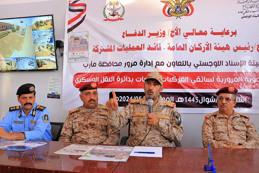 واشاد رئيس الاركان خلال التدشين بحضور رئيس هيئة الاسناد اللوجستي اللواء الركن عبدالعزيز الفقيه، ومدير إدارة شرطة السير بمحافظة مأرب العقيد غانم الفرح، بدور رجال المرور في خدمة المجتمع وسلامة أفراده، ودورهم في تنظيم وضبط حركة سير المركبات والمشاة على الطرقات والشوارع، والذي عكس الصورة الحقيقية والمشرفة لرجال المرور وتفانيهم وإخلاصهم بأداء الواجب.