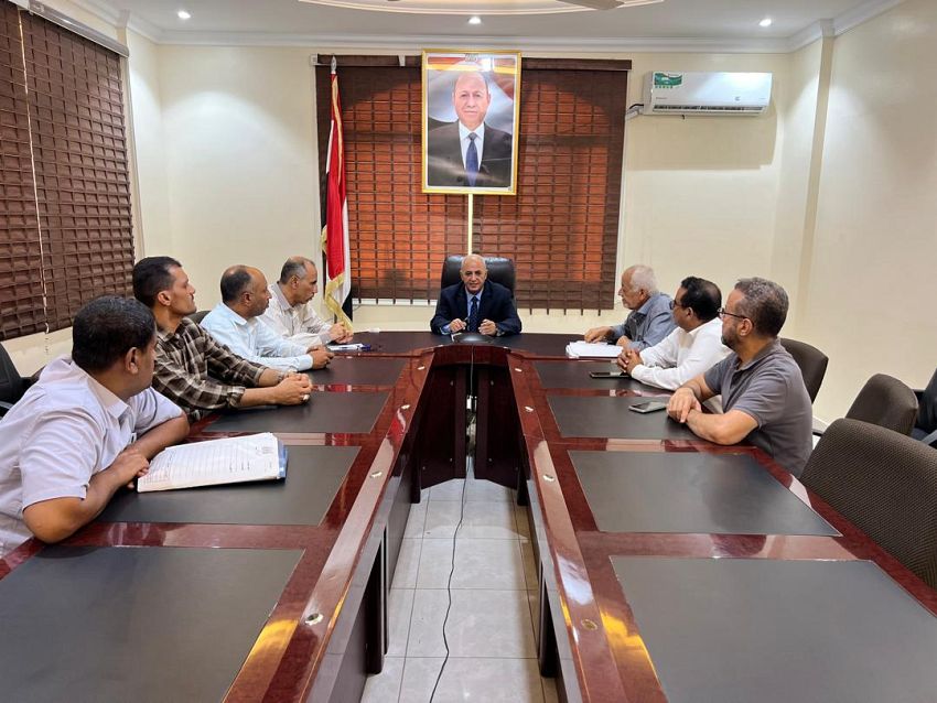 وزير المياه والبيئة الشرجبي يناقش سير العمل في المؤسسة المحلية للمياه والصرف والصحي بسيئون
