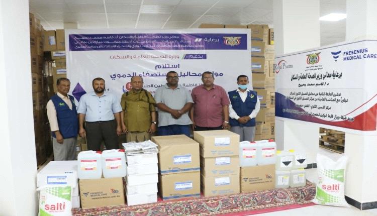 تسلّم مركز فاطمة بابطين الطبي لرعاية مرضى الفشل الكلوي بمديرية القطن محافظة حضرموت ، اليوم ، الدفعة الثانية من مواد ومحاليل الاستصفاء الدموي، تكفي لـ 3000 جلسة غسيل، بدعم من وزارة الصحة العامة والسكان.