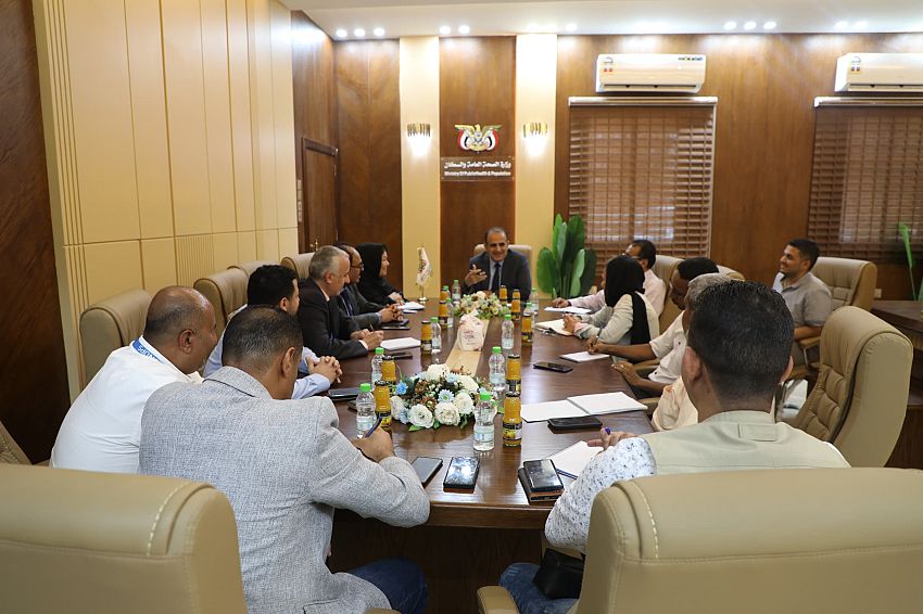 بحث وزير الصحة العامة والسكان الدكتور قاسم محمد بحيبح بالعاصمة المؤقتة عدن اليوم مع فريق من مكتب الأمم المتحدة لخدمات المشاريع اليونيبس سبل تعزيز الشراكة ودعم القطاع الصحي.