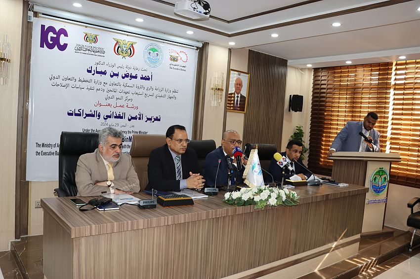 ناقشت ورشة عمل عقدت اليوم في العاصمة المؤقتة عدن بعنوان تعزيز الأمن الغذائي والشراكات نظمتها وزارة الزراعة والري والثروة السمكية بالتعاون مع وزارة التخطيط والتعاون الدولي والجهاز التنفيذي لتسريع استيعاب تعهدات المانحين ودعم تنفيذ سياسات الإصلاحات ومركز النمو الدولي.