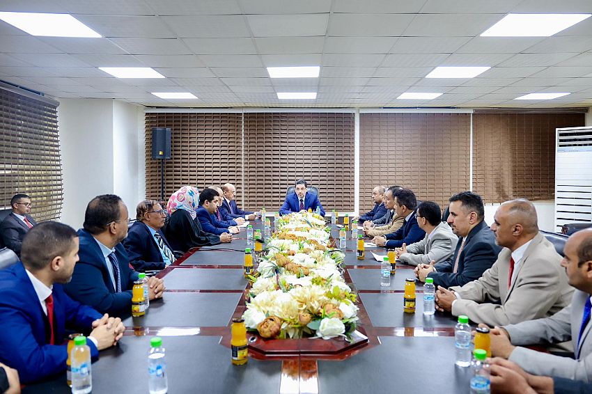 حضر الاجتماع، وزير المالية سالم بن بريك، ومدير مكتب رئيس الوزراء المهندس انيس باحارثة.