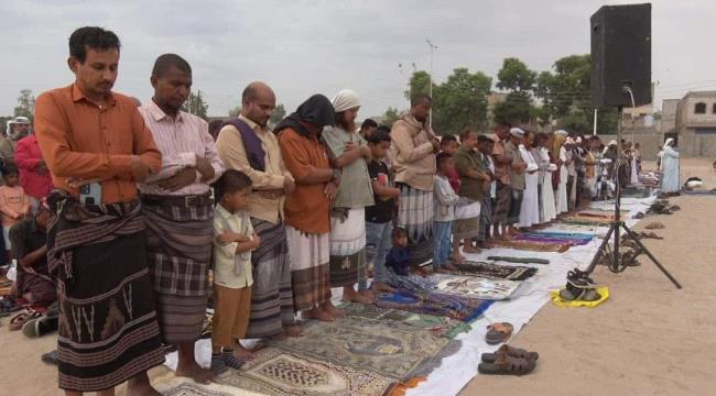 وعقب صلاة العيد، تبادل وكيل المحافظة ومدير الامن، التهاني والتبريكات مع جموع المصلين.