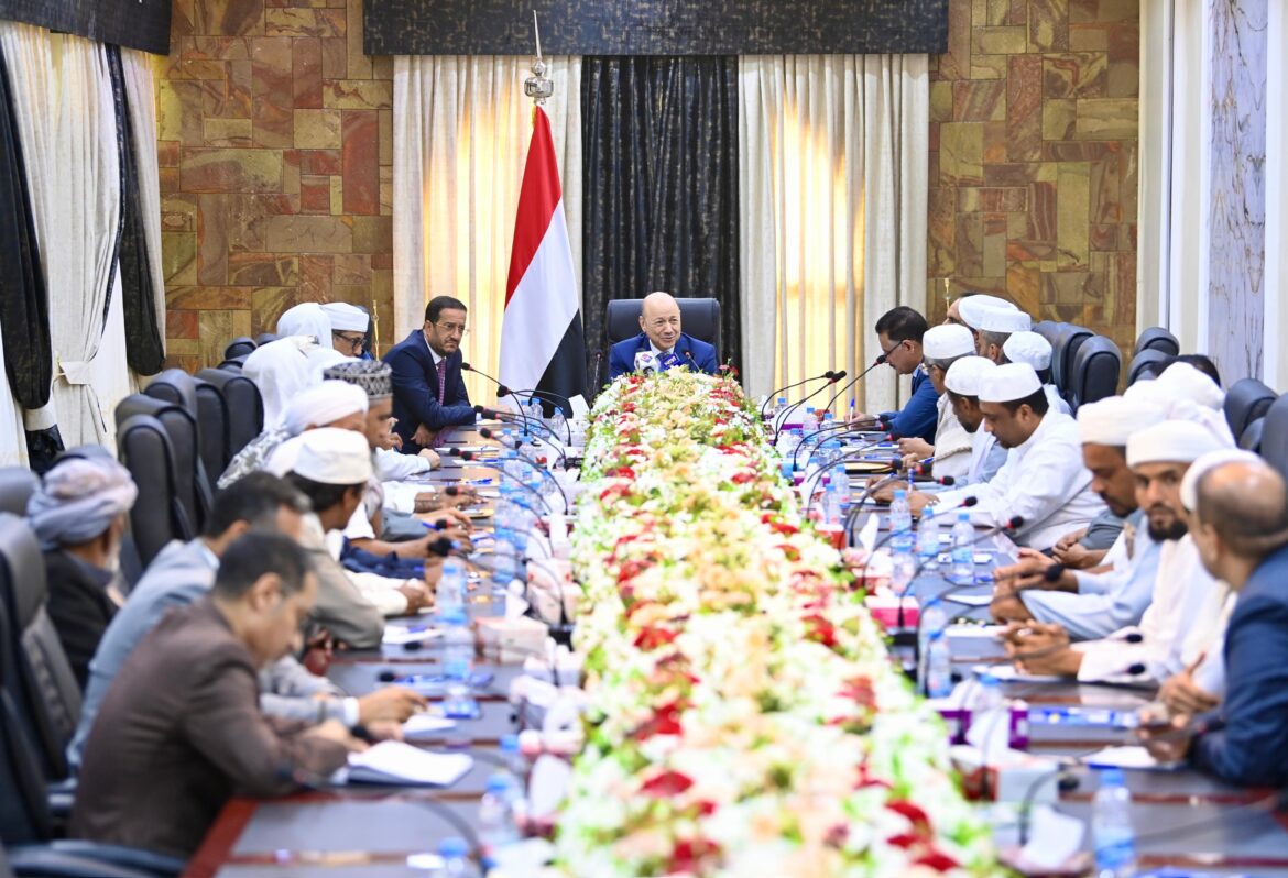 ونوه رئيس مجلس القيادة الرئاسي بالدور الفاعل للعلماء الاجلاء وخطباء وائمة المساجد في تحصين النشء والشباب ضد التطرف والافكار الارهابية.