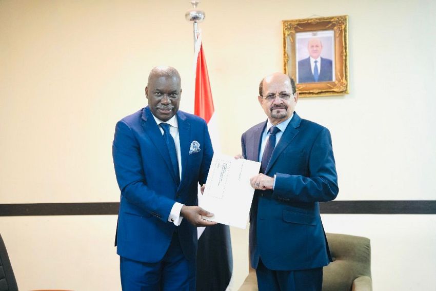 تسلّم وزير الخارجية وشؤون المغتربين، الدكتور شايع الزنداني، اليوم، بالعاصمة المؤقتة عدن، نسخة من أوراق اعتماد، نيلسون مانويل كوزامي، سفيراً فوق العادة ومفوضاً لجمهورية أنغولا الصديقة لدى اليمن.