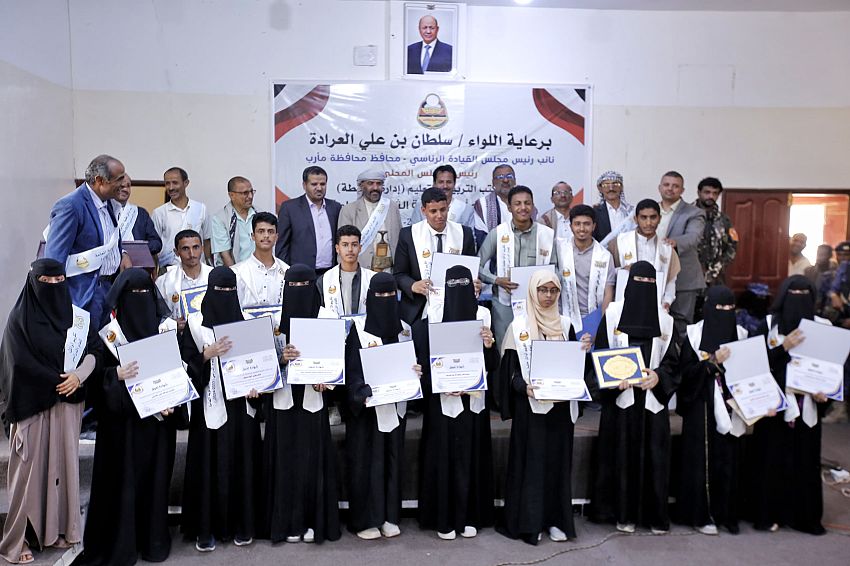 وفي الحفل الذي أقيم بالمناسبة، هنأ نائب وزير التربية والتعليم الدكتور علي العباب، ووكيل المحافظة للشئون الادارية عبدالله الباكري، الطلاب والطالبات الأوائل المكرمين.. لافتين إلى أن تزامن هذا التكريم مع احتفالات الشعب اليمني بالاعياد الوطنية لثورتي 26سبتمبر وَ14أكتوبر المجيدتين بعد وتجسيدا لاهدافها السامية في اخراج اليمن من براثن الجهل والامية الى نور الحرية والعلم والتعليم والرفاه الاقتصادي والعدالة والمساوأة.
