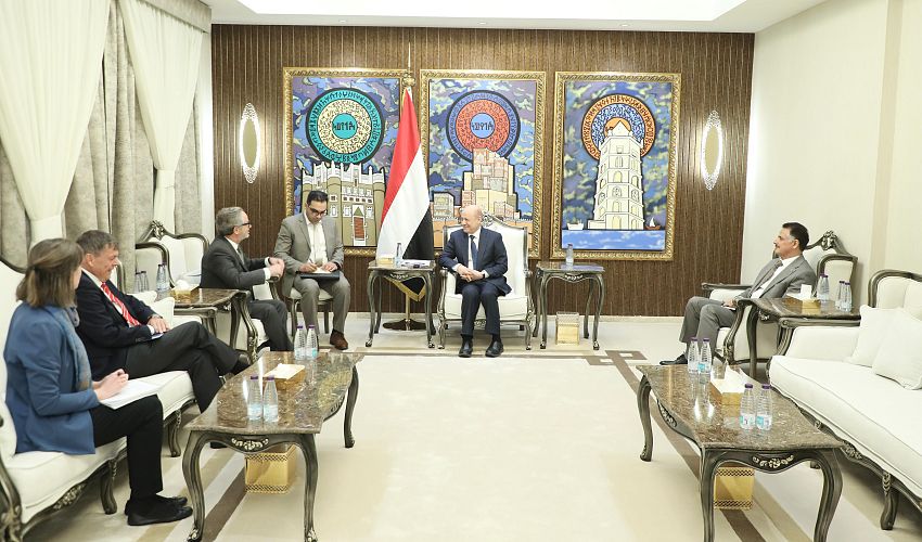 وبحث اللقاء في مستجدات الاوضاع المحلية على كافة المستويات، بما في ذلك التحديات الاقتصادية والتمويلية الناجمة عن توقف تصدير النفط جراء الهجمات الارهابية الحوثية على المنشآت النفطية، وخطوط الملاحة الدولية، وتداعياتها الوخيمة على الاوضاع الانسانية والمعيشية، والخدمية.