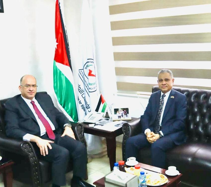 بحث سفير اليمن لدى المملكة الاردنية الهاشمية، الدكتور جلال فقيرة، اليوم، مع رئيس هيئة اعتماد مؤسسات التعليم العالي وضمان جودتها الاردني، الدكتور ظافر الصرايرة، آليات التعاون والتنسيق المشترك بين الهيئة ومجلس الاعتماد الأكاديمي اليمني.