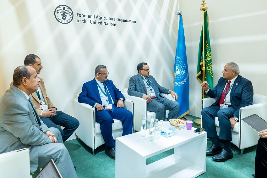 وتطرق اللقاء الذي عقد على هامش فعاليات مؤتمر الأطراف السادس عشر لمكافحة التصحر (كوب 16) المنعقد في العاصمة السعودية الرياض، البرامج والأنشطة والمشاريع المزمع تنفيذها في مجال الزراعة والري والأسماك وبما يسهم في تعزيز الأمن الغذائي ودعم التنمية المستدامة والحفاظ على الأصناف المحلية من خلال انشاء بنوك لحفظ البذور ومكافحة سوسة النخيل الحمراء في محافظتي حضرموت وسقطرى، وتحسين نظم الري الحديثة، ودعم المزارعين بتقنيات زراعية مبتكرة، وتنفيذ برامج لاستصلاح الأراضي الزراعية المتدهورة، وحماية التربة، وتعزيز القدرات المحلية في مواجهة التغيرات المناخية.