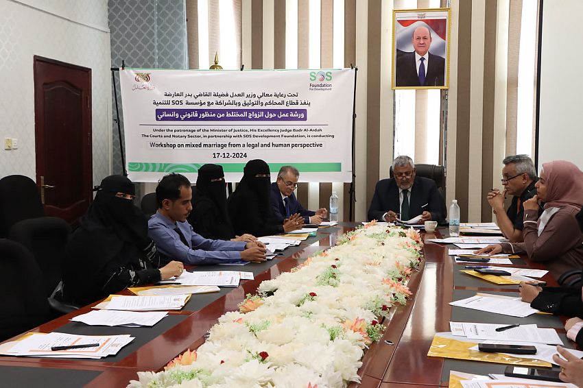 نظمت وزارة العدل، ممثلة بقطاع المحاكم والتوثيق، وبالشراكة مع مؤسسة SOS للتنمية، اليوم في العاصمة المؤقتة عدن، ورشة عمل متخصصة حول ظاهرة الزواج المختلط في اليمن.