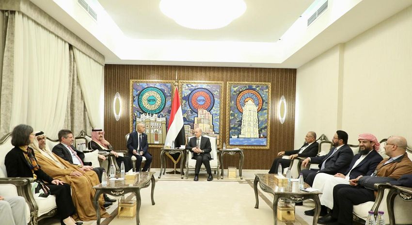 استقبل فخامة الرئيس الدكتور رشاد محمد العليمي، رئيس مجلس القيادة الرئاسي، وبحضور جميع أعضاء المجلس، سفراء المملكة العربية السعودية، والولايات المتحدة، ودولة الإمارات العربية المتحدة، والجمهورية الفرنسية، والمملكة المتحدة، في إطار تأكيد الشراكة القوية مع المجتمع الدولي لدعم اليمن، والشعب اليمني.