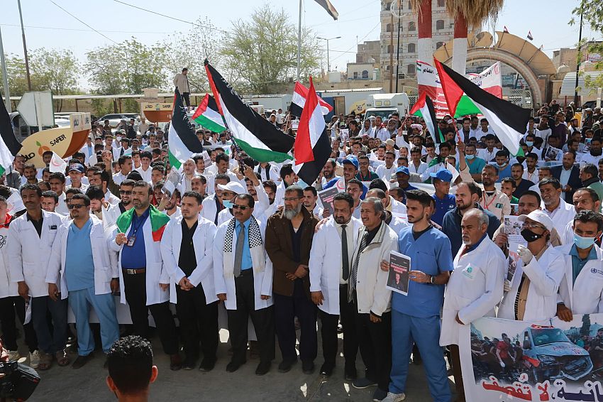 وأكد المشاركون في الوقفة في بيان صادر عنهم، تلقت وكالة الأنباء اليمنية (سبأ) نسخة منه، أن الجرائم والانتهاكات الصهيونية المستمرة بحق العاملين في المستشفيات والمنشآت والمرافق الطبية في قطاع غزة تمثل جريمة حرب مكتملة الأركان وخرق صارخ لكل القوانين والمواثيق الدولية وقرارات الأمم المتحدة التي كفلت الحماية للعاملين في المرافق الطبية وتجرم الاعتداء عليهم بأي شكل من الأشكال خلال الحروب والنزاعات المسلحة.