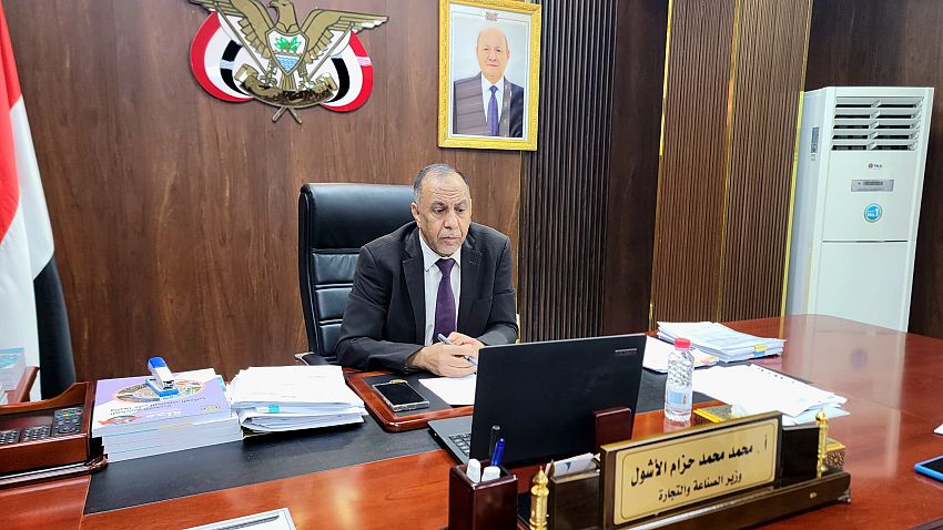 ناقش وزير الصناعة والتجارة محمد الأشول، اليوم، في العاصمة المؤقتة عدن، عبر الاتصال المرئي، مع رئيس الاتحاد العام للغرف التجارية محمد عبده سعيد، سبل تعزيز التعاون والعمل المشترك.