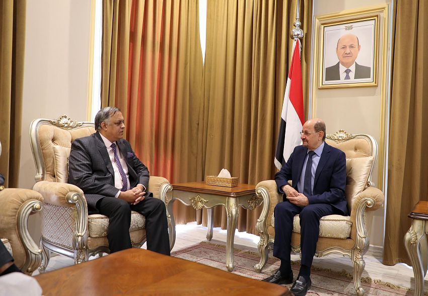 من جانبه، اكد السفير الهندي، دعم بلاده للحكومة اليمنية ومجلس القيادة الرئاسي، و دعمها لجهود تحقيق السلام في اليمن.