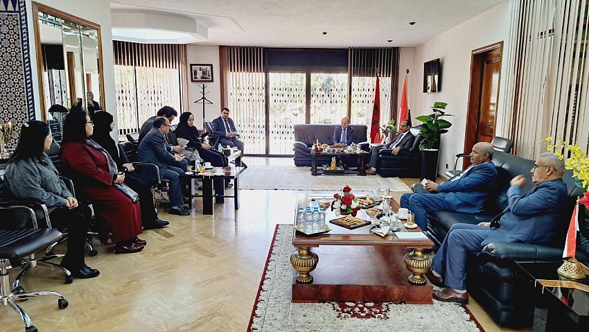 كما ناقش مع أعضاء البعثة، السبل الكفيلة بتعزيز العلاقات الثنائية بين اليمن والمملكة المغربية، وبرنامج زيارته الحالية.