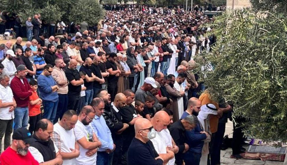 أدى الآلاف، صلاة الجمعة الأخيرة، من شهر رمضان المبارك في المسجد الأقصى المبارك، وسط الإجراءات العسكرية الإسرائيلية المشددة.
