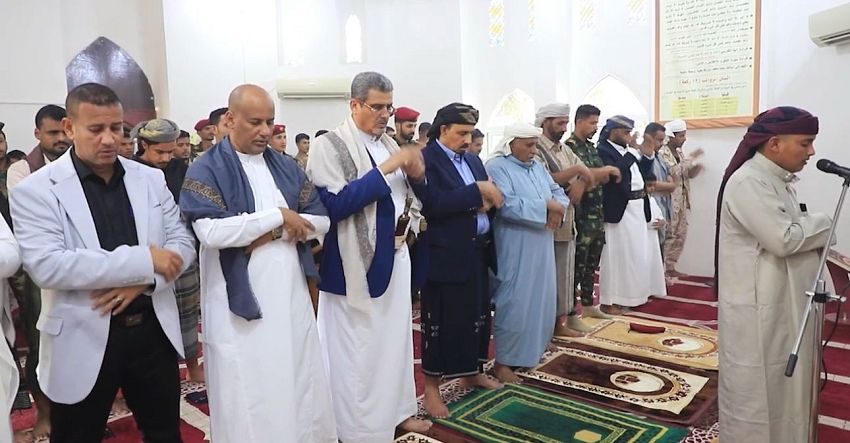 أدّى محافظ حضرموت، مبخوت مبارك بن ماضي، اليوم، صلاة عيد الفطر المبارك مع جموع المصلّين في جامع القصر بمدينة المكلا.