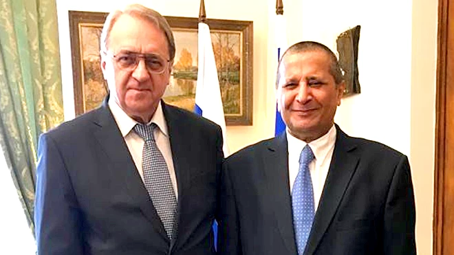 بحث سفير اليمن لدى روسيا، الدكتور احمد الوحيشي، اليوم، مع مبعوث الرئيس الروسي للشرق الاوسط وأفريقيا، نائب وزير الخارجية الروسي، ميخائيل بوجدانوف، سبل تعزيز العلاقات الثنائية.
