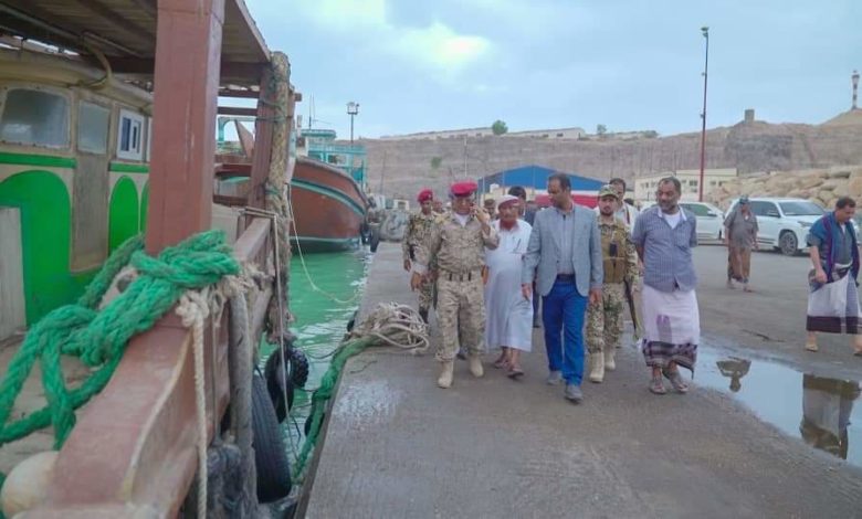 تفقد وكيل محافظة المهرة، العميد دكتور مختار محمد الجعفري، اليوم، سير العمل في ميناء نشطون، ومرافقه الخدمية والتشغيلية.