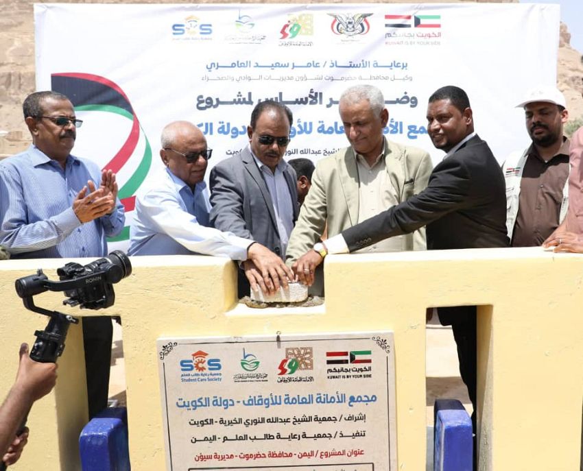 وضع وكيل محافظة حضرموت لشؤون مديريات الوادي والصحراء عامر العامري، اليوم، حجر الأساس لمشروع مجمع الأمانة العامة للأوقاف الكويتية، الذي تنفذه جمعية رعاية طالب العلم.