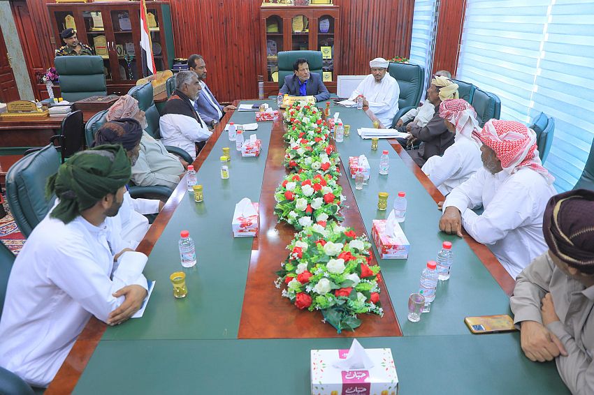 جاء ذلك خلال اجتماع المحافظ بمدير عام مديرية حات، محسن مشخفي، بحضور الأمين العام للمجلس المحلي سالم نيمر، لمناقشة أوضاع المديرية واحتياجاتها التنموية.