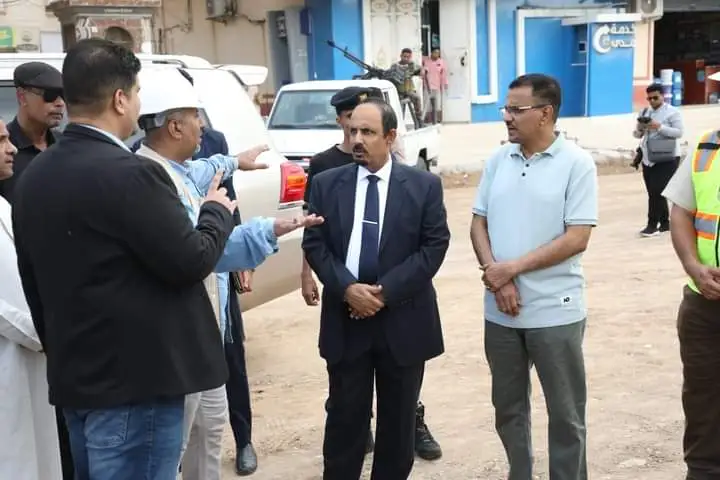 واطلع المحافظ على سير العمل اعمال البناء صالة ألعاب الظل بمنشأة نادي شعب حضرموت الرياضي مع المكاتب الإدارية، ومشروع خور المكلا المرحلة الثانية.