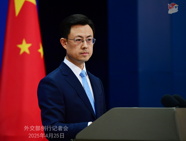 قال قوه جياكون المتحدث بإسم وزارة الخارجية الصينية اليوم الجمعة خلال المؤتمر الدوري للمتحدث بإسم وزارة الخارجية الصينية اليوم الجمعة الموافق 25-4-2025 إن المتحدث بإسم وزارة الخارجية الصينية: الصين والولايات المتحدة لاتجريان أي مشاورات أو مفاوضات بشأن التعريفات الجمركية، وعلى الولايات المتحدة ان تتوقف عن خلق الإرتباك.. وأضاف أن وفيما يلي نص المؤتمر الصحفي: