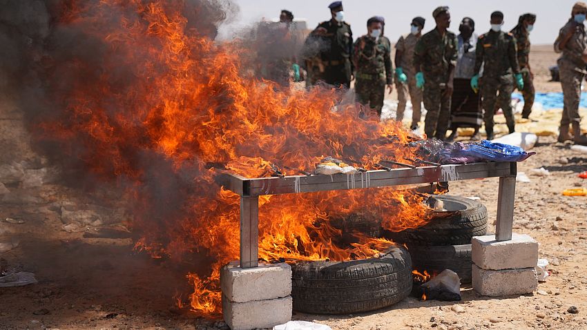 أتلفت الأجهزة الأمنية والقضائية بمحافظة المهرة، اليوم، أكثر من أربعة أطنان من مادة الحشيش المخدر، ونحو 200 كيلوجرام من مادة الشبو .