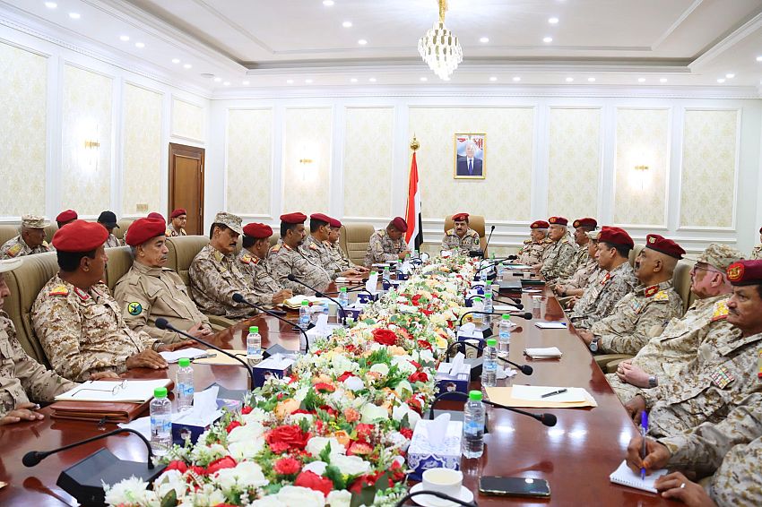 ووقف الاجتماع، على طبيعة الموقف العسكري في مختلف جبهات ومحاور القتال، وتخادم مليشيات الحوثي الإرهابية مع التنظيمات الإرهابية لمحاولة إقلاق السكينة في المناطق المحررة.