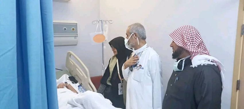 واطمأن الدكتور دحان ومعه نائب رئيس لجنة المدينة المنورة الدكتور وضاح الشبحي، على الحالة الصحية لإحدى الحاجات، التي خضعت لعملية جراحية ناجحة لتثبيت كسر في عنق الفخذ الأيمن، في مستشفى الملك فهد في المدينة المنورة، واطلع على الحالة الصحية لبعض الحجاج اليمنيين الذين يتلقون الرعاية الطبية.