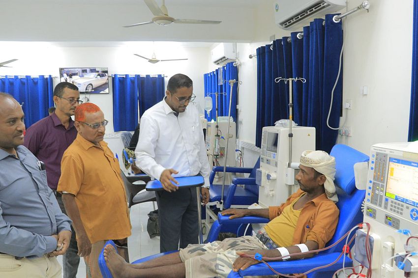 واستمع الوكيل القديمي، من مدير المركز يحيى الكبيش، إلى شرح تفصيلي عن نشاط المركز وعدد الحالات التي تتلقى جلسات الغسيل الكلوي بشكل منتظم بمعدل مرتين أسبوعيا.
