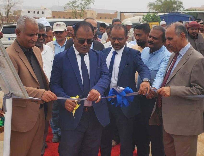 افتتح وكيل محافظة حضرموت لشؤون مديريات الوادي والصحراء عامر العامري، اليوم ، مشروع منظومة طاقة شمسية نظام هجين قدرة ألف كيلو واط ، لتشغيل آبار حقل جثمة بسيئون ، بتمويل من البنك الدولي عبر مكتب الأمم المتحدة لخدمات المشاريع (اليونبس)