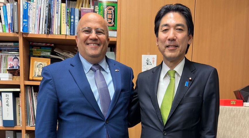 بحث سفير اليمن لدى اليابان، عادل السنيني، اليوم، مع وزير الأمن الاقتصادي الياباني، كيوتشي مينورو، تعزيز العلاقات الثنائية ومجالات الدعم الاقتصادي والتنموي، والبرامج المقدمة من الحكومة اليابانية الصديقة.