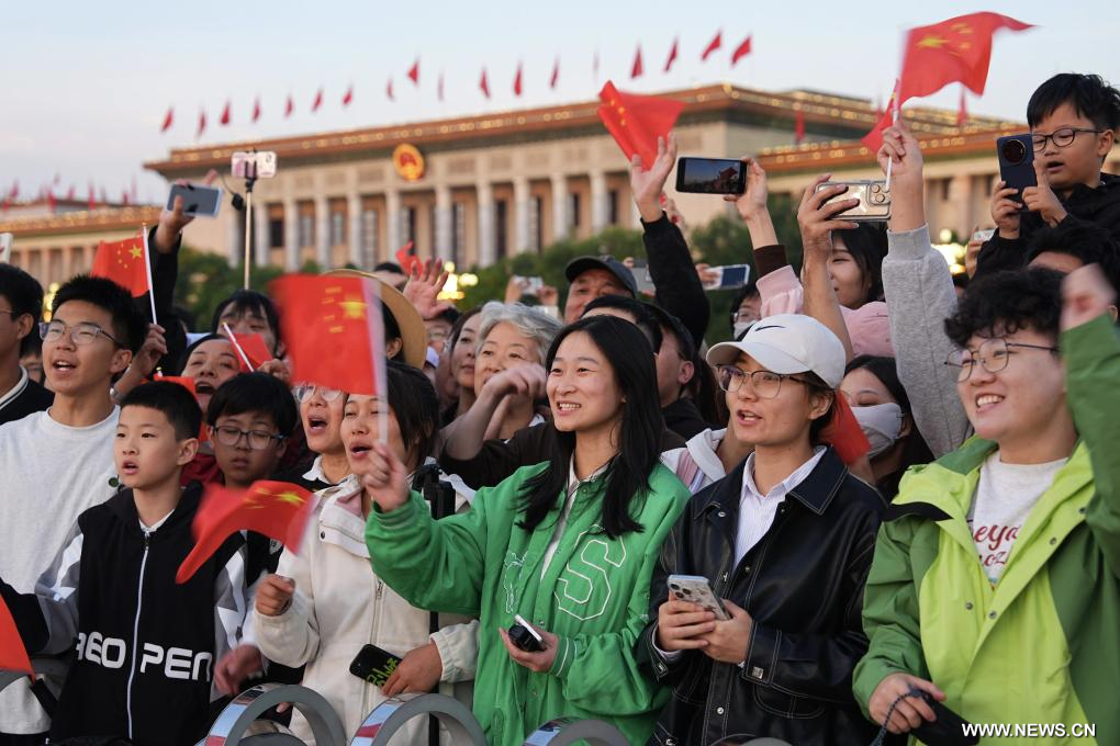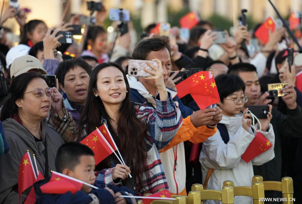 أحتفل المواطنون الصينيويون بالذكرى الـ76 لتأسيس جمهورية الصين الشعبية ويظهر في الصور الملتقطةاليوم الاربعاء الاول من أكتوبر 2025، المواطنون الصينيون وهم يحضرون مراسم رفع العلم الوطني ويشاركون قياداتهم السياسية بالاحتفال بالذكرى الـ76 لتأسيس جمهورية الصين الشعبية بميدان تيانآنمن في العاصمة الصينية بكين.