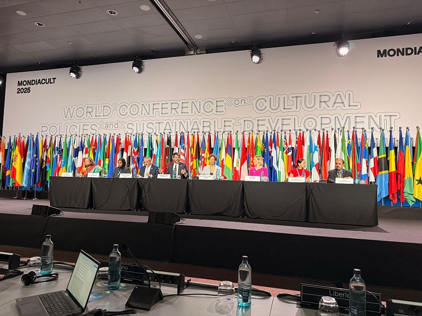 جاء ذلك خلال مشاركة وزير الإعلام والثقافة والسياحة، ممثلًا للجمهورية اليمنية، في أعمال المؤتمر العالمي لليونسكو للسياسات الثقافية والتنمية المستدامة “موندياكولت 2025″، الذي عُقد خلال الفترة من 29 سبتمبر إلى 1 أكتوبر بمدينة برشلونة الإسبانية، بمشاركة وزراء الثقافة وممثلي المنظمات الدولية والإقليمية والخبراء والفاعلين الثقافيين من مختلف دول العالم.