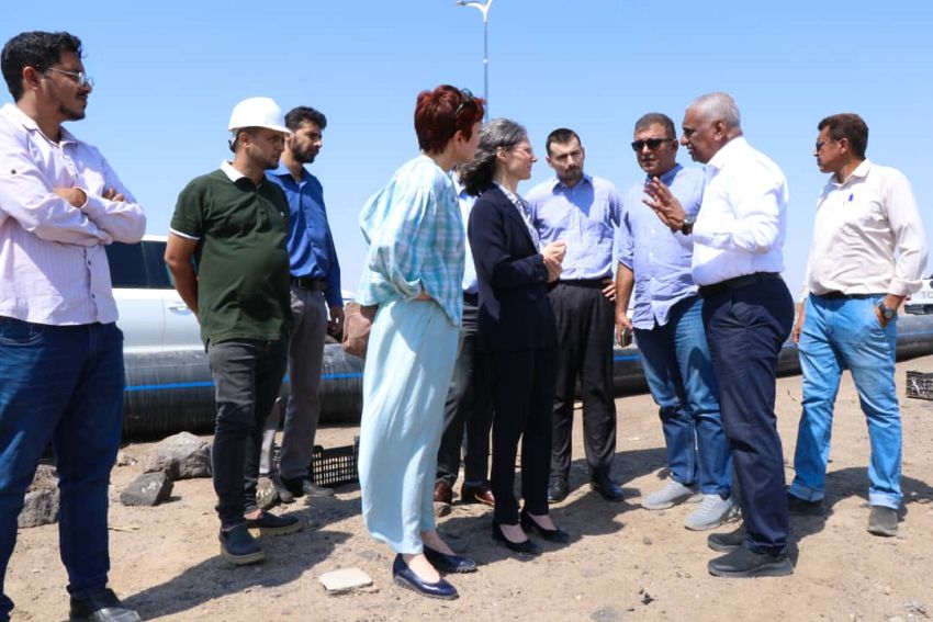 تفقد مدير عام المؤسسة المحلية للمياه والصرف الصحي بمحافظة عدن، المهندس محمد باخبيرة، والسفيرة الفرنسية لدى اليمن كاثرين قرم كمون، والمدير القطري لمنظمة “تراينجل” الإنسانية، سند أنيس، سير تنفيذ مشروع إعادة تأهيل أجزاء من خط الضخ الرئيسي في الخط البحري القادم من بئر أحمد.