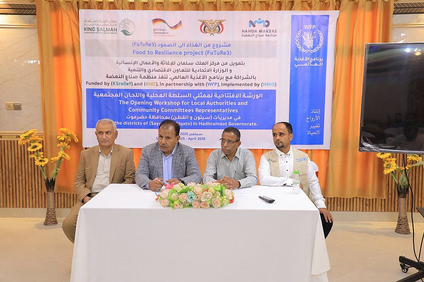 عقدت بمدينة سيئون محافظة حضرموت، اليوم، الورشة الافتتاحية لممثلي السلطة المحلية واللجان المجتمعية بمديريتي سيئون والقطن، ضمن أنشطة مشروع “من الغذاء إلى الصمود” (FutuRe3)، والممول من مركز الملك سلمان للإغاثة والأعمال الإنسانية، وتنفيذ مؤسسة صناع النهضة.