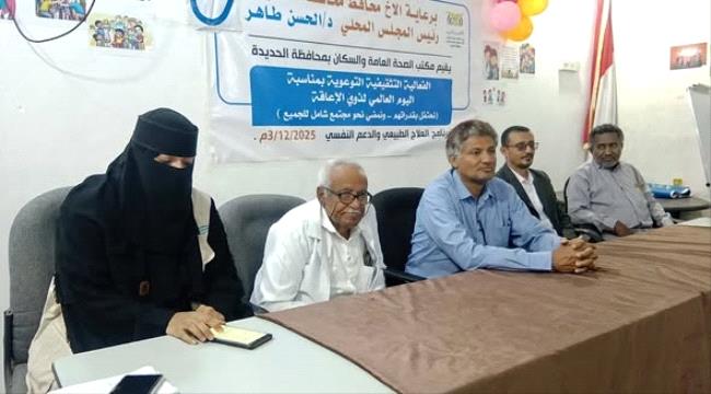 نظم مكتب الصحة العامة والسكان، بمحافظة الحديدة، اليوم، فعالية تثقيفية توعوية بمناسبة اليوم العالمي لذوي الإعاقة، هدفت إلى رفع الوعي المجتمعي بحقوق ذوي الإعاقة، وتعزيز النظرة الإيجابية تجاه قدراتهم.
