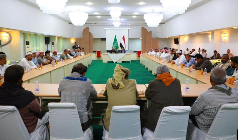محافظ حضرموت والوفد السعودي يعقدان اجتماعاً موسعاً بالوجهاء والأعيان والقيادات السياسية والاجتماعية