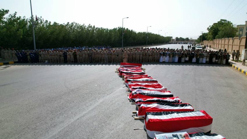 بدورهم تعهد المشيعون بالسير على درب الشهداء الميامين الأبطال حتى تحرير كامل تراب الوطن واستعادة الدولة، وبناء مؤسساتها ودحر مليشيات الحوثي الإرهابية، والحفاظ على مقدرات الوطن والمكتسبات الوطنية.