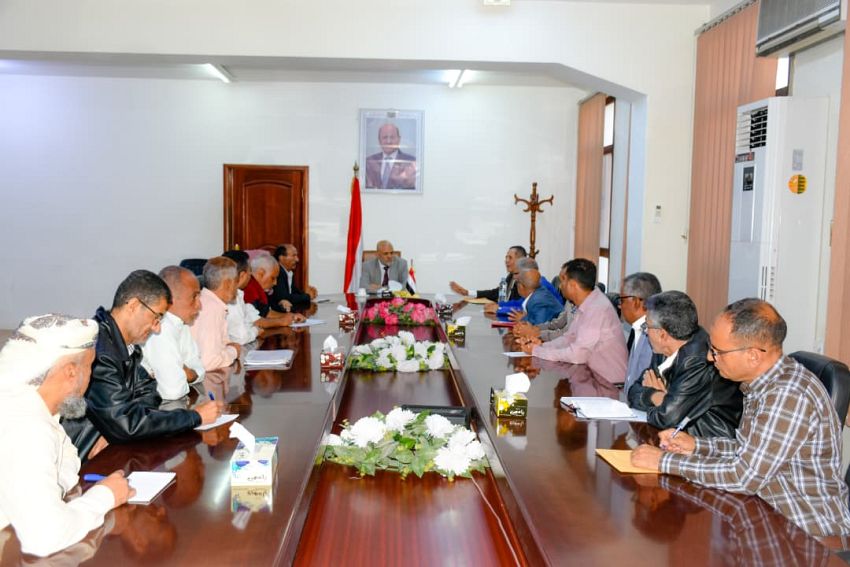 واستمع المحافظ شمسان خلال اللقاء بحضور وكيل المحافظة للشؤون الاجتماعية، محمد الصنوي، لشرح من ممثلي نقابات الموظفين والكيانات النقابية والحقوقية عن سير العمل والقضايا المتعقلة بالعمال.