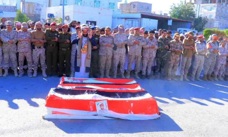 وخلال مراسم التشييع التي تقدمها قائد المنطقة العسكرية السادسة، اللواء الركن هيكل حنتف، لُفَّ جثامين الشهداء بالعلم الجمهوري، وحُملت على أكتاف حرس الشرف في موكب جنائزي مهيب يليق بتضحياتهم البطولية، وبمشاركة واسعة من القيادات العسكرية، والشخصيات الاجتماعية، وجموع من أهالي الشهداء ومحبيهم ورفاقهم في السلاح.