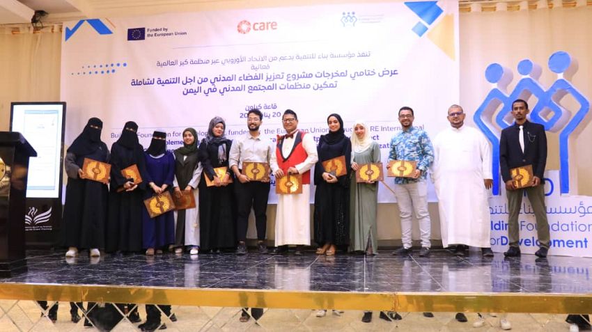 اختُتم، اليوم الثلاثاء، في العاصمة المؤقتة عدن، مشروع تعزيز الفضاء المدني من أجل تنمية شاملة، الذي نفذته مؤسسة بناء للتنمية، بدعم من الاتحاد الأوروبي عبر منظمة “كير” العالمية، بهدف تمكين منظمات المجتمع المدني في اليمن وتعزيز دورها التنموي.