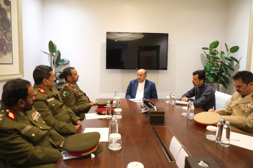 وشدد على ضرورة بذل المزيد من الجهود في إعادة دمج القوات المسلحة وإعادة تموضعها وفق توجهات الدولة، وتحت مظلة عسكرية موحدة، بما يسهم في مواجهة مختلف التحديات الأمنية والعسكرية، وتأمين كافة المواقع والمنشآت في المحافظات المحررة.