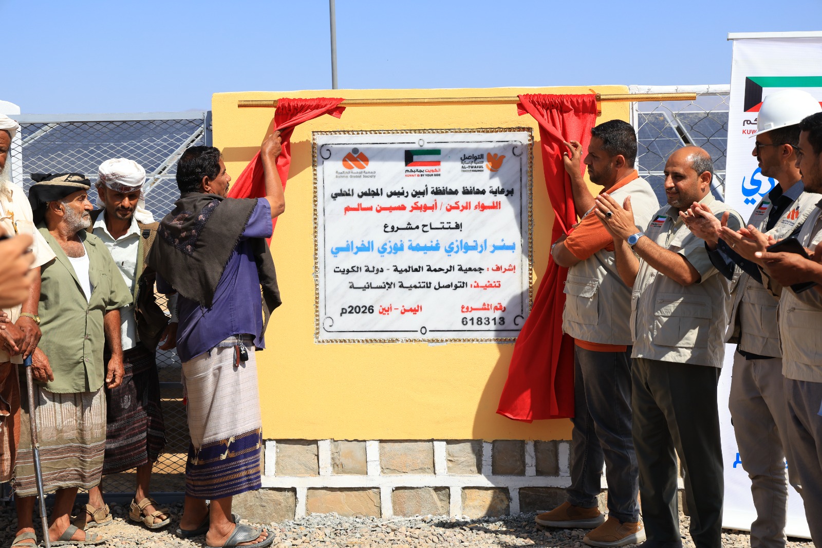 افتتحت جمعية الرحمة العالمية الكويتية، اليوم الثلاثاء، مشروع بئر ارتوازية في مديرية مودية بمحافظة أبين، يستفيد منها نحو 6 آلاف شخص من عدة قرى بتمويل كويتي ضمن حملة (الكويت بجانبكم).