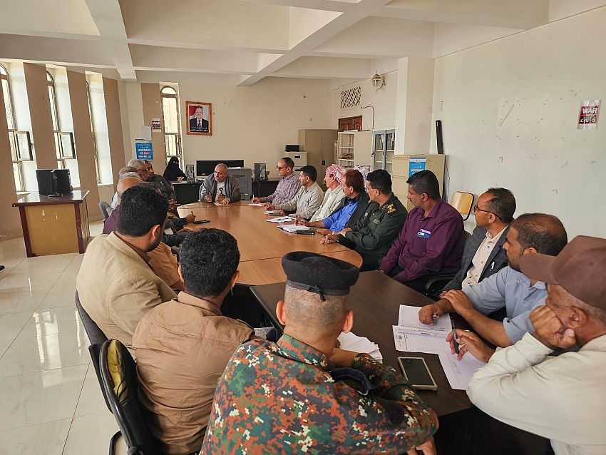 وخلال الزيارة، عقد الوكيل المخلافي اجتماعاً ضم مدير عام المديرية عبدالعزيز الشيباني، وأمين عام المجلس المحلي سعيد الراعي، وأعضاء المجلس ومدراء المكاتب التنفيذية بالمديرية، استمع خلاله إلى تقرير مفصل حول الأوضاع العامة، وفي مقدمتها ملف النظافة والتحسين.